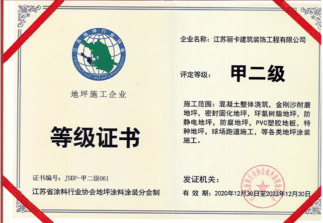 江蘇麗卡建筑裝飾工程有限公司是一家專業(yè)化、多元化公司;公司致力于工業(yè)地坪材料工程和施工場(chǎng)地的開發(fā)設(shè)計(jì)、銷售施工及保養(yǎng)維護(hù)。